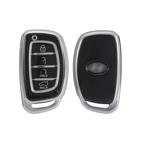 Keycare TPU Key Cover Compatible for Alcazar and Creta 2021 4 Button Smart Key | TP67 Silver Black