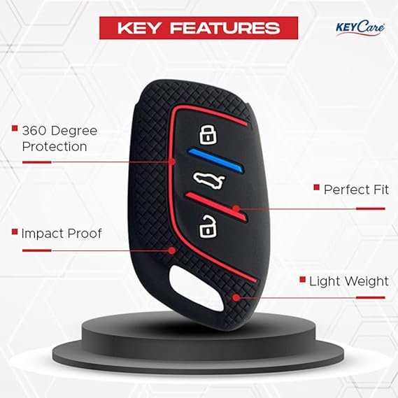 Keycare Silicon Key Cover Fit for MG ZS EV, Astor 3 Button Smart Key KC65 | Black