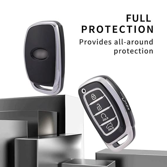 Be the first to review “Keycare TPU Key Cover Compatible for Alcazar and Creta 2021 4 Button Smart Key | TP67 Silver Black”