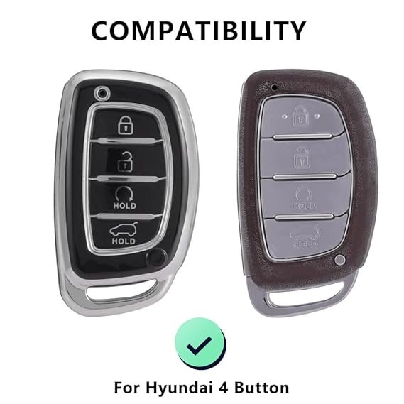 Keycare TPU Key Cover Compatible for Alcazar and Creta 2021 4 Button Smart Key | TP67 Silver Black