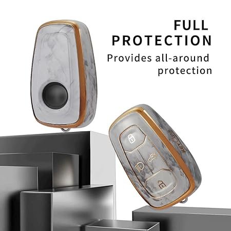 Keycare TPU Key Cover Compatible for Nexon, Harrier, Tigor BS6, Tigor EV, Safari 2021, Altroz, Safari Gold, Gravitas, Punch Smart Key | TP08 Marble Finish