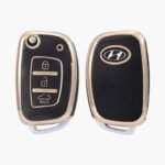Keycare TPU Key Cover For Hyundai Creta, I20, Venue, Tucson, Alcazar, Grand I10, Aura, Xcent Flip Key | TP10 Gold Black