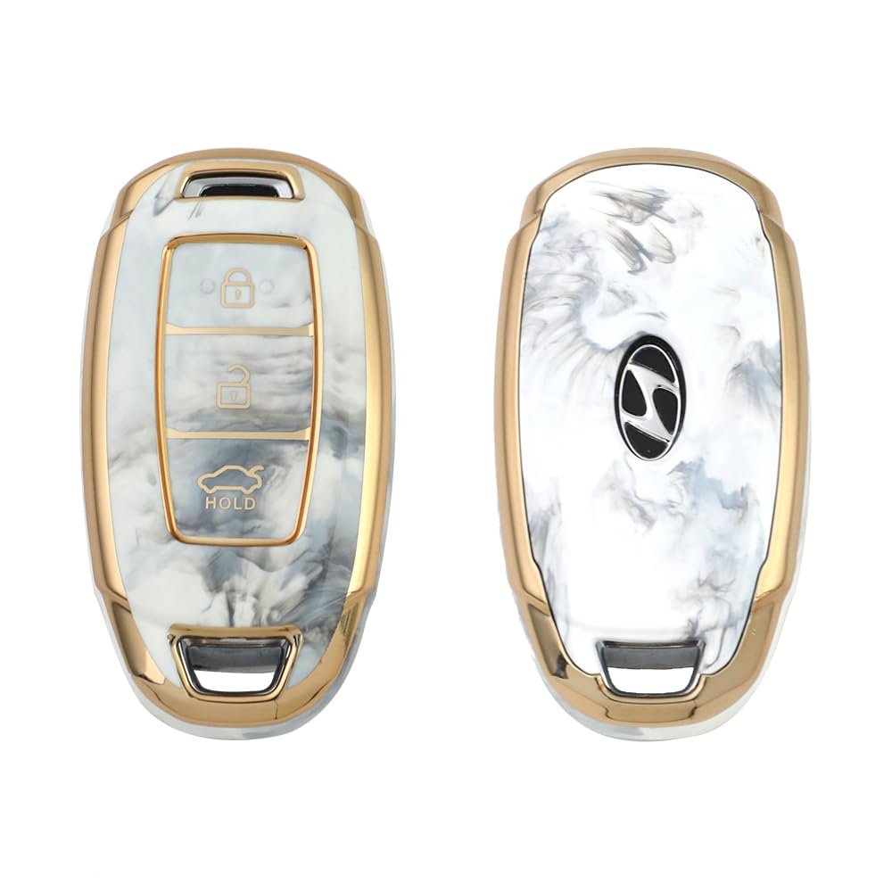 keycare TPU key cover for i20, Kona, Verna 3 button flip key | TP43 | Marble Finish